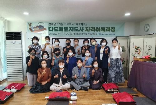 재단법인 의정부시평생학습원(원장 송원찬)은 생애주기별 평생교육을 지원하기 위한 생애경력개발 프로젝트 "세모학교" 프로그램‘다도예절지도사 자격취득과정’을 지난 7월 14일 개강했다.