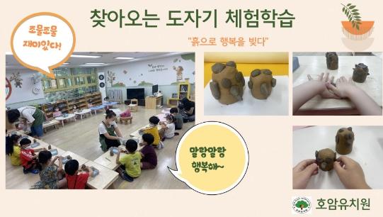 호암유치원(원장 이규순)은 7월 14일과 15일, 이틀 동안 ‘찾아오는 도자기 체험학습’을 하였다.