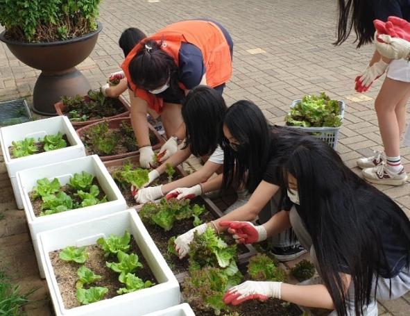 당초 계획대로 텃밭에 상추, 감자, 방울토마토를 재배를 결정해 직접 씨앗을 뿌리고 모종을 심고, 중간 과정을 지켜보며 학생들이 호기심을 키우고 애정을 쏟으며 재배를 완료했으며, 재배한 농작물은 저소득 어르신 10가구에 전달할 예정이다.