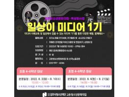 참가비 무료인 ‘일상이 미디어’ 프로그램은 각 16명씩 선착순으로 모집하며, 오는 7월 16일(토) 오전 10시부터 김포시청소년재단 홈페이지 온라인통합접수시스템에서 신청 가능하다.