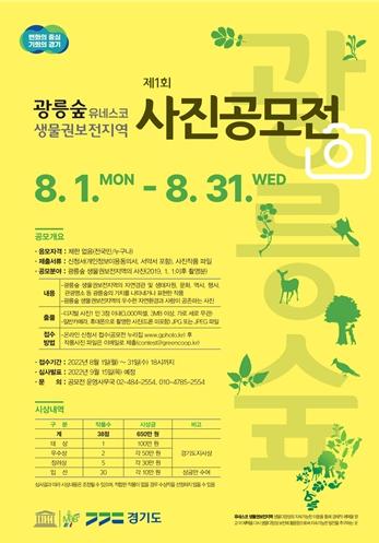 도 관계자는 “이번 공모전은 광릉숲 생물권보전지역 곳곳에 숨겨진 우수 자원을 발굴해 국민들의 관심도를 높이고자 올해 처음 기획됐다”며 “광릉숲을 사랑하는 이들의 많은 참여를 당부 드린다”고 밝혔다.