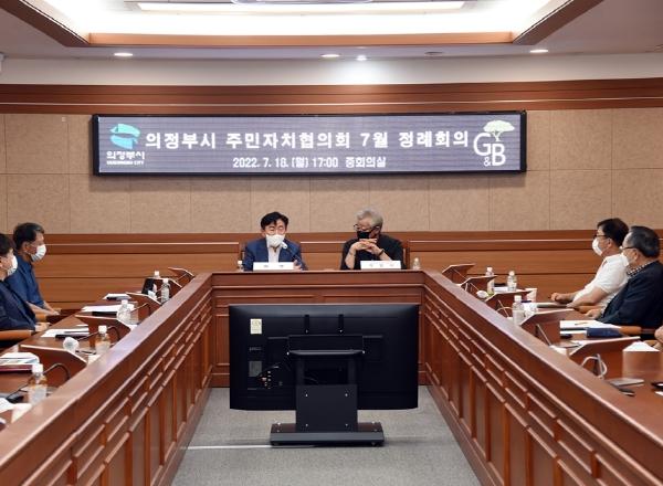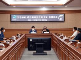 의정부시 주민자치협의회는 7월 18일 14개 동의 주민자치회장으로 구성된 주민자치협의회 정례회의를 개최했다. 이날 회의에는 김동근 의정부시장이 참석해 의정부시 주민자치 발전을 위해 심도 있는 토론을 실시했다.