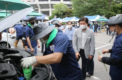 조용익 부천시장은 이날 오전 10시 부천종합운동장 내 주차장에서 진행한 ‘휴가철 자동차 무상 안전점검 행사’ 현장을 방문하여 행사에 참여한 정비업 대표자들을 격려하고, 무상점검을 위해 방문한 시민들과 이야기를 나누며 시정에 관한 다양한 의견을 경청했다.