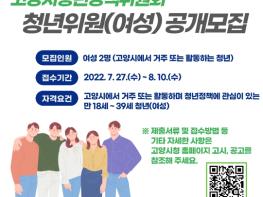 고양특례시는 오는 8월 10일까지 고양시 청년정책위원회 여성 청년위원 2명을 공개모집한다.