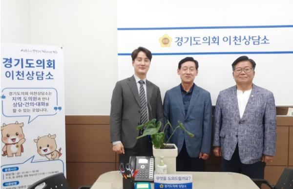 경기도의회 김일중의원(국힘, 이천시1), 허원의원(국힘, 이천시2)는 29일 경기도의회 이천상담소에서 조명철 위촉상담관과 지역 현안에 대한 의견과 인사를 나누며 “다양한 부서의 오랜 행정 경험과 지역 현안에 능통한 조명철 위촉상담관이 경기도의회와 함께 해주셔서 고맙다”고 반겼다.
