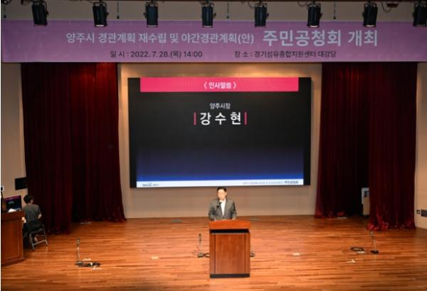 이날 공청회는 강수현 양주시장과 관계 전문가, 시민, 공무원 등 약 160여명이 참석한 가운데 2017년에 수립한 양주시 경관계획의 재정비 방안과 야간경관계획을 설명하고 전문가 토론, 질의응답 순으로 진행됐다.