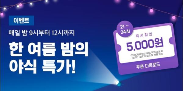 이번 이벤트는 행사 기간 내 밤 9시부터 자정까지 배달특급 주문 시 사용할 수 있는 5,000원 할인 쿠폰을 제공하는 것이 골자다. 최소 주문 금액 2만5,000원 이상 결제 시에 사용할 수 있다.