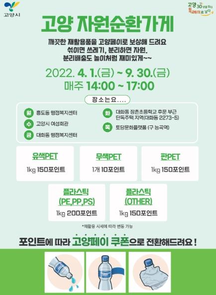 한편, 고양시는 시민들의 자발적인 분리배출 참여를 유도하기 위해 달리는 재활용가게와 자원순환가게를 운영하고 있다. 시는 집중 홍보기간 동안 온·오프라인 매체를 활용해 투명페트병 별도 배출제를 널리 알리고 시민이 일상 속에서 지속가능한 환경보호 실천을 이룰 수 있도록 유도할 계획이다.