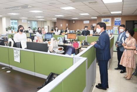 조용익 부천시장이 지난 7월 29일 부천시보건소를 방문해 코로나19 방역 최일선에서 대응하고 있는 직원들을 격려하고 코로나19 재유행 대응체계를 점검했다.