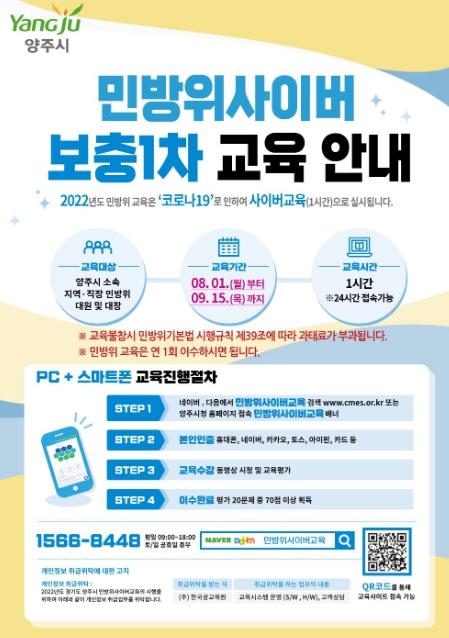교육대상자는 양주시청 홈페이지 배너 또는‘민방위 사이버교육’ 홈페이지를 통해 교육을 수강할 수 있다.