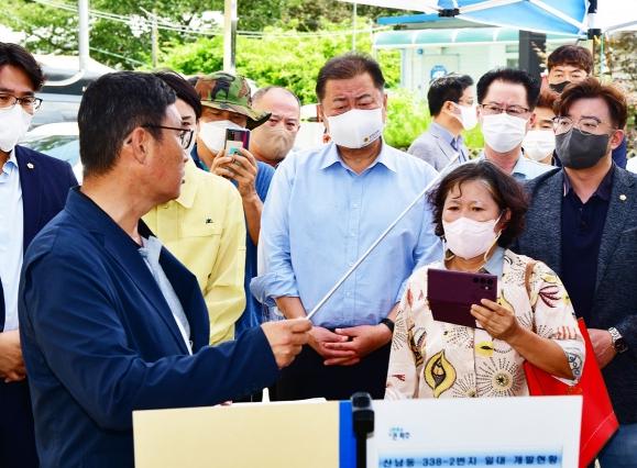 김경일 파주시장은 지난달 29일 산남동 민원현장을 방문해 토지개발로 인한 시민들의 애로사항을 청취하고 관련 부서에 해결방안을 조속히 마련하라고 지시했다.