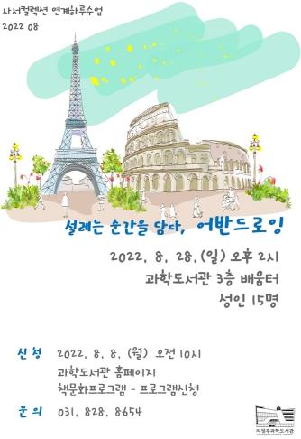 8월 28일 오후 2시에는 ‘설레는 순간을 담다, 어반드로잉’ 하루 수업을 진행한다. 펜과 형광펜을 이용해 여행지의 도심 풍경, 일상 풍경 사진을 보고 따라 그려본다. 연필 스케치, 펜 덧스케치, 형광펜 채색 작업으로 장소와 도구에 구애받지 않고 초보자도 쉽게 멋진 그림을 완성할 수 있다.