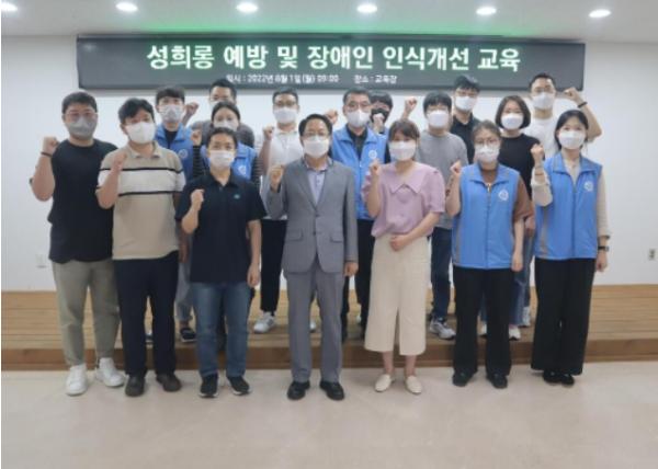 끝으로 김광회 대표이사는 “이번 직장 내 성희롱 예방 및 장애인 인식개선 교육을 통해 보다 안전하고 평등한 근로환경을 조성하고, 시정목표 중 장애인이 행복한 도시, 의정부를 만드는 일에 재단 모든 임·직원이 최선을 다해 주길 바란다”고 당부했다.