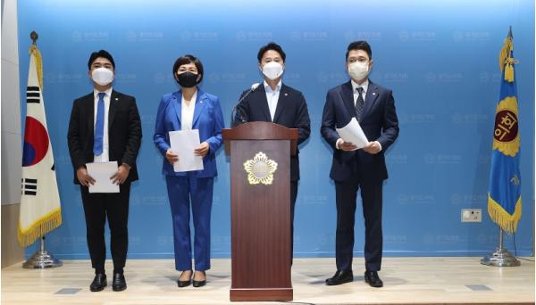 이날 기자회견에 참석한 대변인은 황대호(수원3) 수석대변인, 이채명(안양6), 전석훈(성남3), 정동혁(고양3) 대변인이 참석했다.