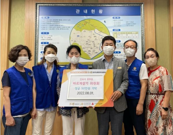 풍무동바르게살기위원회에서 취약계층 이웃들을 위해 성금 50만 원을 기탁했다.