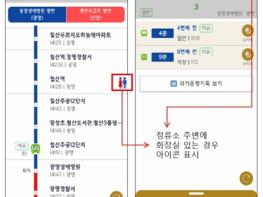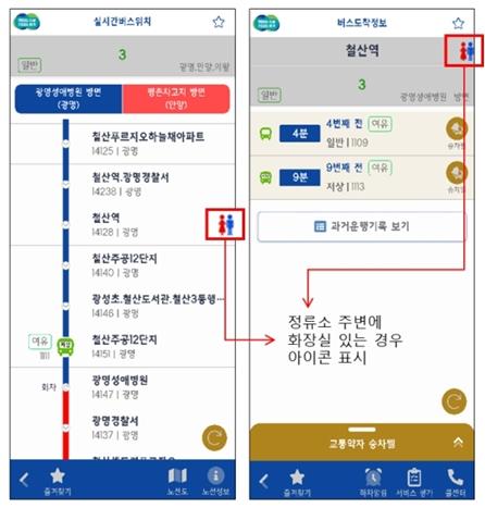 먼저 ‘버스 정류소 주변 개방화장실 유무’ 정보제공은 용무가 급한 승객이 정류소 인근에 개방화장실이 있는지 여부를 확인할 수 있는 서비스다.