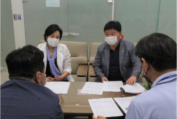 경기도의회 군포 출신 정윤경 의원(더불어민주당, 군포1), 성기환 의원(더불어민주당, 군포2)이 8월 4일(목) 경기도 문화체육관광국장, 문화종무과 종무1팀장으로부터 ‘2023년 전통사찰 보수정비사업’에 관한 보고를 받았다.
