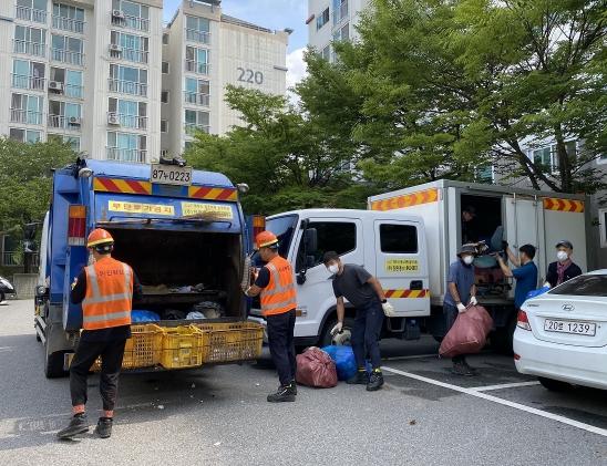 파주시 교하동은 지난 5일 환경업체 ㈜진환경과 교하사랑협의체의 도움을 받아 쓰레기로 덮인 집에서 생활하는 관내 독거노인 가구의 집을 대청소했다고 밝혔다.