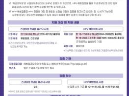 임미숙 보건소장은 “1995년생 저소득층 여성 및 2004년생 여성 청소년은 이번 연도 마지막 지원 대상인만큼 올해 안에 1차 접종을 꼭 받아 달라”고 당부했다.
