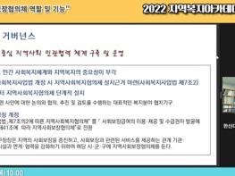 이번 교육은 지역사회의 복지 문제 해소를 위해서 조직된 읍면동 단위의 지역사회보장협의체 위원을 대상으로 진행했으며, 코로나19 재확산 방지를 위해 파주스타디움 대회의실에 화상 강의실을 마련해 비대면으로 실시했다.