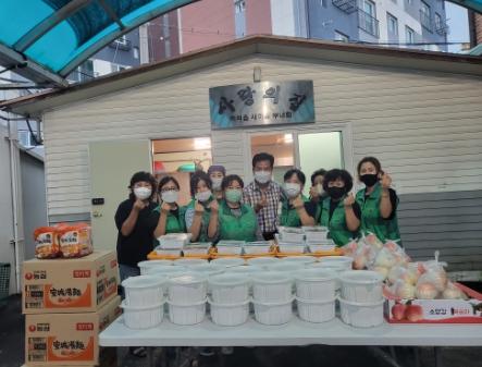 이날 부녀회원들은 코로나19 장기화로 식사 준비가 더욱 어려워진 독거노인들이 건강한 생활을 유지하실 수 있도록 삼계탕 50인분과 어르신들의 영양을 고려해 정성껏 만든 밑반찬, 라면 20박스를 가정에 직접 방문 전달하며 어르신들에게 따뜻한 마음을 전했다.