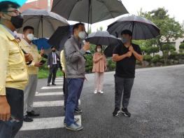 임태희 교육감과 자연재난 상황관리전담반은 옹벽붕괴로 식당동 건물 기초가 드러난 숭신여고를 찾아 피해 상황을 살피고 안전사고 대비 방안을 논의했다.