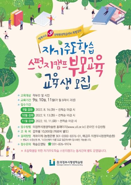 재단법인 의정부시평생학습원은 권역평생학습센터에서 학부모를 위한 특별강좌로‘자기주도학습 스펀지캠프 부모교육’을 운영한다고 밝혔다.