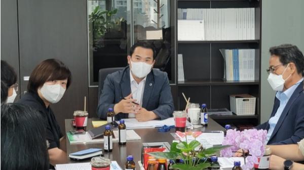 경기도의회 이오수 도의원(국민의힘, 수원9)은 지난 23(화) 광교해모로 입주자대표 회장과 입주민들을 초청, GH 실무자들의 공사 설명회를 준비하고 그동안의 진행상황등을 토대로 주민 의견청취등의 정담회를 개최했다.