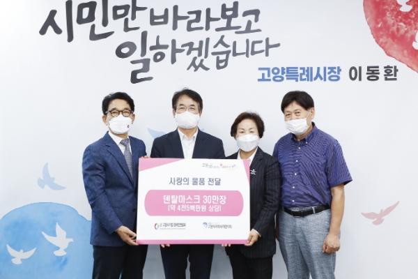 전달받은 약 4,500만원 상당의 덴탈마스크는 고양시사회복지협의회를 통해 관내 사회복지 시설 및 코로나19로 어려움을 겪는 소상공인에게 전달될 예정이다.