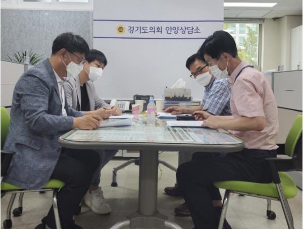 경기도의회 김철현의원(국민의힘, 안양2), 김재훈의원(국민의힘, 안양4), 유영일의원(국민의힘, 안양5)은 24일 경기도의회 안양상담소에서 안양시청 기후대기과 홍승일 과장과 함께 기후 에코그린센터 조성에 따른 도비 확보 관련으로 논의하는 자리를 가졌다.