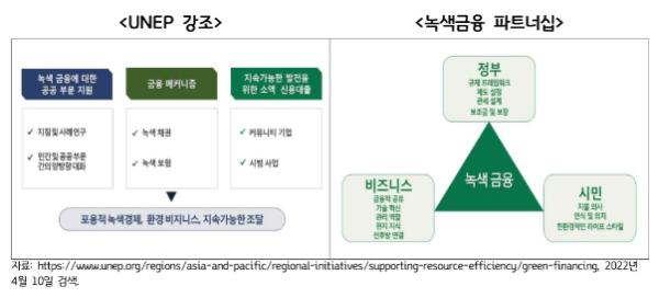 정부는 2021년 ‘2050 탄소중립 전략’을 지원하기 위해 온실가스 감축, 기후변화 적응, 물의 지속가능한 보전, 자원순환, 오염방지 및 관리, 생물다양성 보전 등 6대 환경목표 달성을 위한 경제활동으로 한국형 녹색 분류체계를 발표했다. 이 녹색 분류체계는 ‘녹색 부문’과 ‘전환 부문’으로 구분됐으며, 총 69개 세부 경제활동으로 구성해 녹색 채권, 녹색 프로젝트 파이낸싱 등 다양한 녹색금융 활동의 기준으로 활용되고 있다.