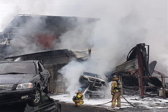 같은 기간 경기북부 지역에서도 폐차장 화재 12건 중 3건이 폐차량 해체과정 중 용단 불티가 주변에 있던 기름에 붙어 발생한 것으로 확인됐다.