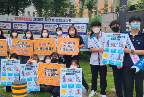 덕현고등학교는 안전한 전동킥보드 이용 문화 확산을 위해 학부모, 학생, 교사가 함께 참여하여 ‘전동킥보드 안전하게 타세요!’캠페인을 실시했다고 25일 밝혔다.