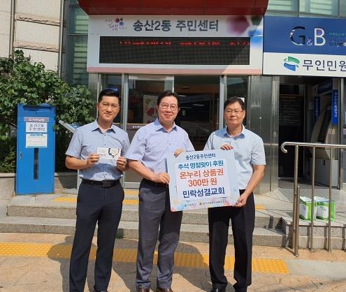 의정부시 송산2동은 민락성결교회에서 온누리상품권 300만 원을 기부했다고 밝혔다.
