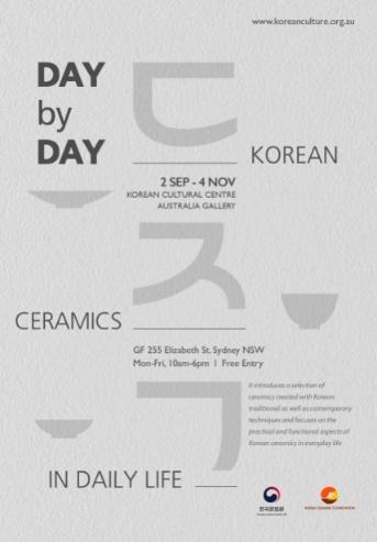 한국도자재단이 9월 2일부터 11월 4일까지 호주 주시드니한국문화원 전시관에서 한국생활도자전 ‘Day By Day: Korean Ceramics in Daily Life’를 개최한다.