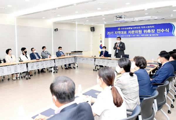 파주시는 29일 오전 파주시의회 세미나실에서 제20기 민주평통 파주시협의회 지역대표 자문위원에게 위촉장을 전수했다.