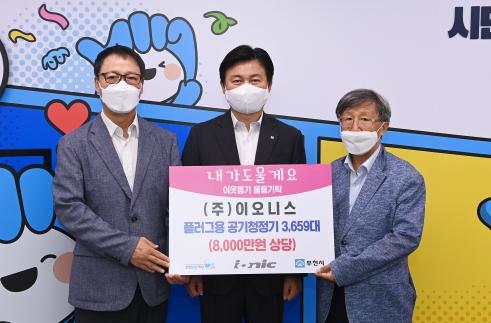 주식회사 이오니스는 지난 29일 저소득 독거 어르신을 위해 8,000만원 상당의 플러그용 공기청정기 3,659개를 기탁했다.