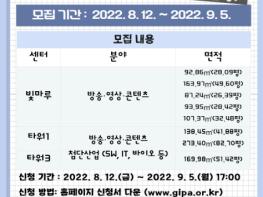 모집 규모는 총 8개실로 빛마루 5개실, 타워1(남정7차) 2개실, 타워3 (M-city) 1개실을 모집 중이며, 입주 대상은 방송·영상, 스마트콘텐츠, 지식서비스(S/W, IT) 분야의 기업과 예비창업자이다.