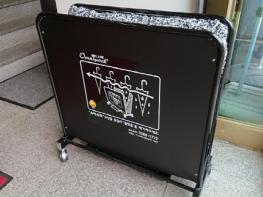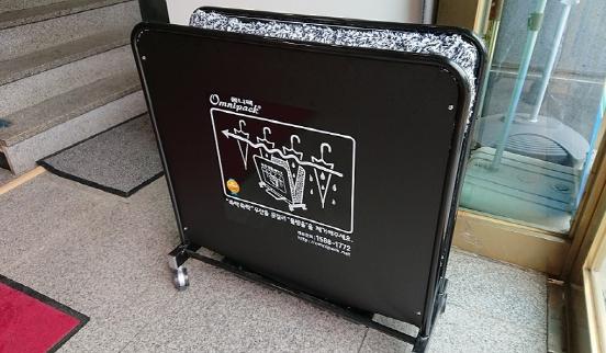 공공기관에서의 실천 과제로 1회용 비닐 커버 사용 대신 우산 빗물 제거기를 설치했다.