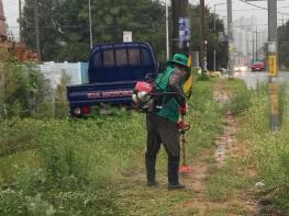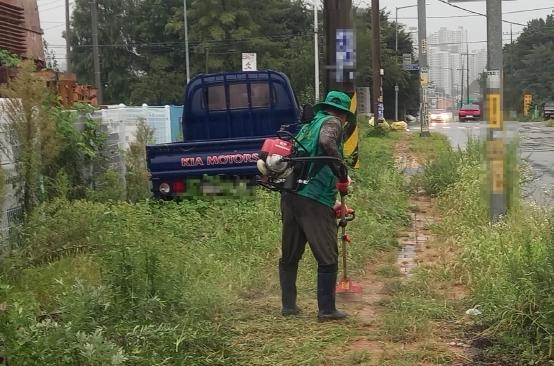 이틀 동안 아침부터 비가 오는 날씨임에도 새마을지도자 회장 정지헌 등 10여명 회원들은 우비를 입고 제초작업을 진행했다.