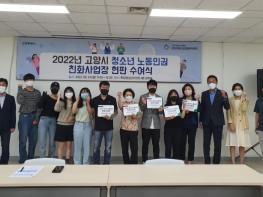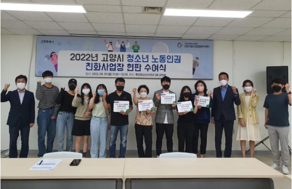 재단법인 고양시청소년재단(이사장 이동환) 산하기관 고양시청소년상담복지센터(센터장 황상하)는 8월 29일, 청소년 노동인권 친화사업장으로 선정된 15개 업체를 대상으로 현판 수여식을 개최하여, 관내 근로청소년들의 안전한 노동환경을 위해 힘쓰고 있다.