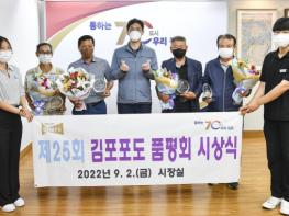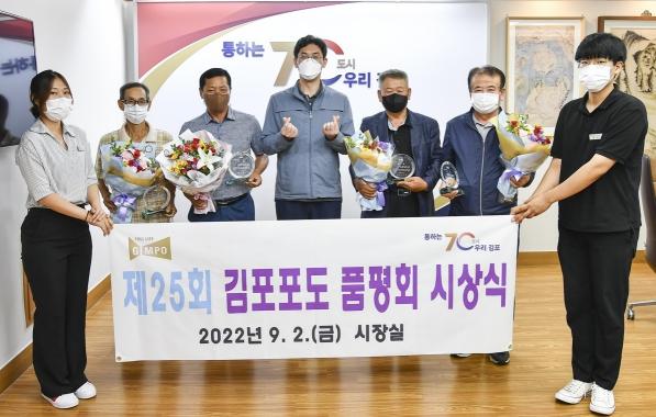 김포시와 김포시포도연구회는 지난 8월 30일, 고품질 포도를 소비자에게 공급하고 김포포도 재배기술 향상과 재배농가 간의 선의의 경쟁을 유도하기 위해 제25회 김포포도 품평회를 실시하고, 9월 2일 입상자에 대한 시상식을 진행했다.