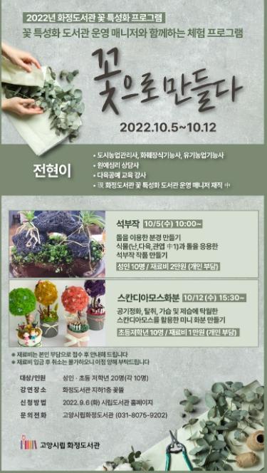 고양특례시 꽃 특성화 도서관 화정도서관이 10월을 맞아 도서관 매니저가 운영하는 특별 강좌 ‘꽃으로 만들다’를 선보인다.