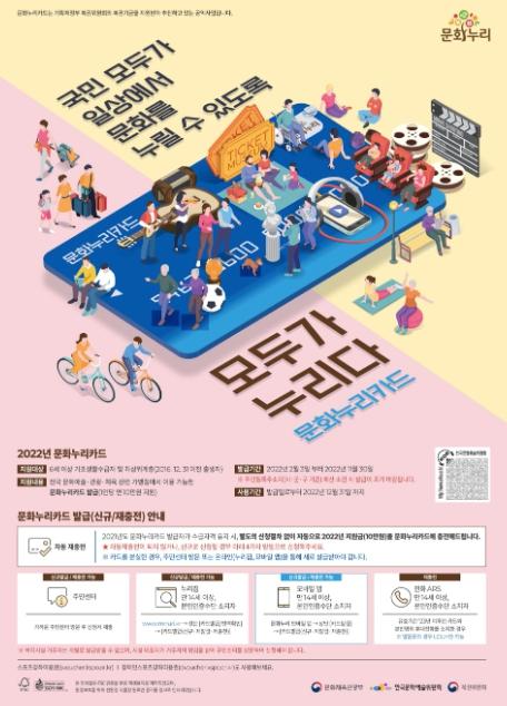시 관계자는 “문화누리카드 지원 금액이 총 11만원으로 늘어난 만큼 문화누리카드를 꼭 사용해 주시길 바란다.”고 밝혔다.