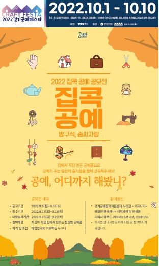 한국도자재단이 9월 17일부터 22일까지 직접 만든 공예품을 뽐내는 방구석, 솜씨자랑 ‘2022 집콕 공예 공모전’을 연다.