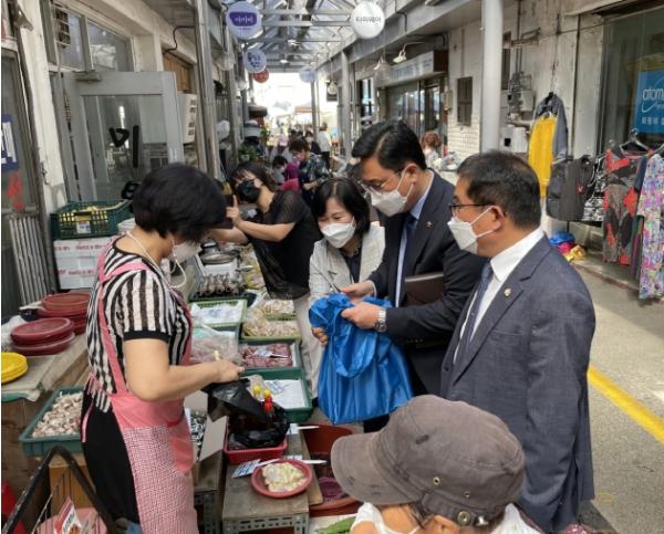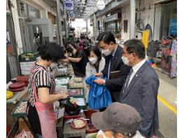 이용욱 의원은 직접 추석맞이 장을 보며 전통시장의 운영현황을 파악하고 시장 상인들의 애로사항을 청취했다.