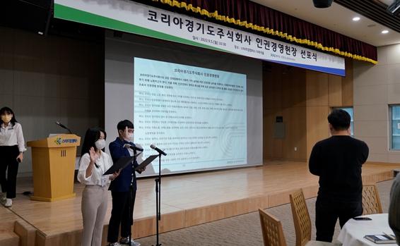 앞서 경기도주식회사는 지난 5일 경기도주식회사 본사에서 열린 월례 회의를 통해 전 임직원이 참석한 가운데 ‘코리아경기도주식회사 인권경영헌장 선포식’을 진행했다.