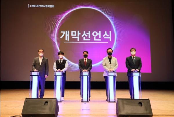 수원권역 미래진로직업박람회는 20일부터 23일까지 ‘우리의 꿈은 이제 시작이다’라는 주제로 운영하고 있다. 온-오프라인을 아우르며 ▲진로멘토와 만나는 메타버스 진로특강, ▲직업인?직장현장을 체험하는 진로직업체험존, ▲미래과학기술분야를 체험하는 미래창의존 ▲학과에 대한 안목과 현실적인 진학의 길을 모색하는 학과탐색존, ▲미래직업을 상상해 보고 나의 미래를 그려보는 상상 놀이터 드림플레이존 등 다양한 분야로 체험 기회를 준비했다.