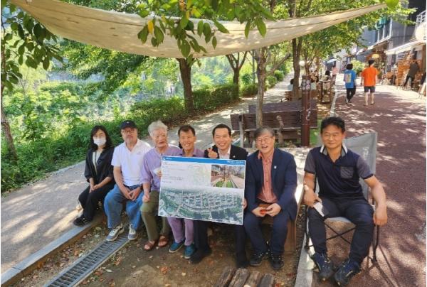 특조금 확보 후 23일, 이 의원은 최종현 카페거리 발전협의회 회장, 지역 주민, 조흥연 영통구 녹지과장 등 관계자와 함께 광교 카페거리 현장을 직접 확인했다.