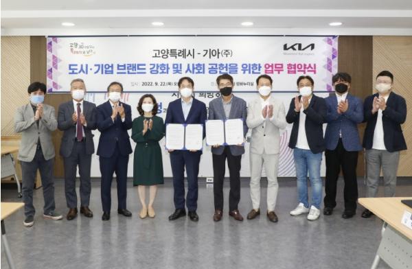 고양특례시와 기아(주)가 지난 22일 고양시청에서 도시·기업 브랜드 강화 및 사회공헌을 위한 업무협약을 체결했다.